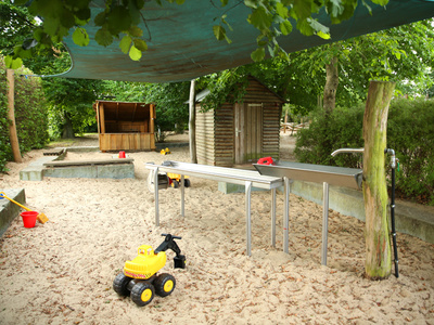 Das kindliche Bedürfnis zu matschen, wird durch unseren großen Sandkasten mit Wasserpumpe angeregt.