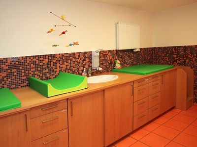 Für pflegerische Tätigkeiten nutzen wir unsere harmonisch eingerichteten Wickelräume. Die ungeteilte, sensible Aufmerksamkeit, die ein Kind beim Wickeln oder der Körperpflege erfährt, trägt zum Aufbau und zur Festigung der gegenseitigen Beziehung bei.
